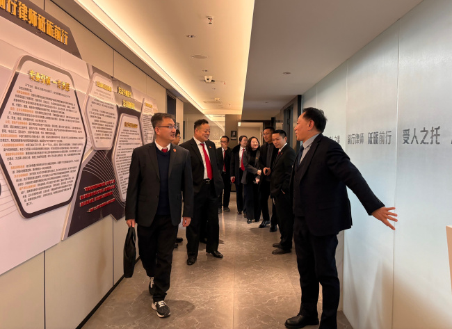 张永波一行10人实地参观了前行律师事务所,详细了解律所的人员构成、业务范围及在我院案件代理情况。